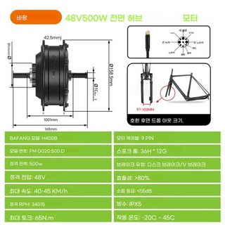 Ebike 모터 키트 고속 브러시리스 기어 허브 36V 48V 350W 전기 자전거 변환 전면 카세트 후면 displayp6 Z, 03 Front Motor 500w
