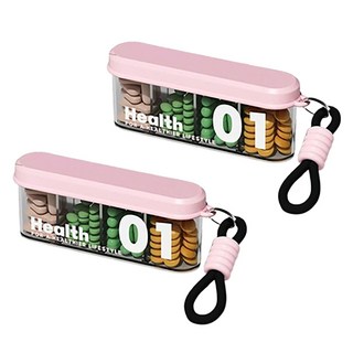 한봄누리 외출 여행 미니 약통 휴대용 칸막이 약 케이스 핑크, 2개