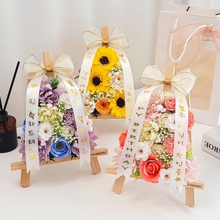 더라임코리아 비누꽃 미니화환+쇼핑백 승진 영전 개업 생일 환갑 축하, 옐로, 개업문구
