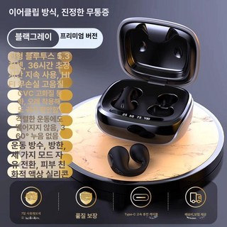 헤몬팜 오픈이어 무선 이어폰 블루투스 이어폰 충전식 골전도 이어폰, 블랙,1개