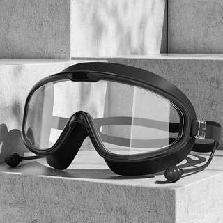 쬬린 귀마개 일체 와이드 뷰 고글수경, 블랙, 1개