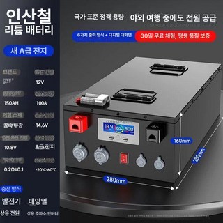 MACHIO 인산철 배터리 파워뱅크 대용량 고출력 12V 24V 150AH 200AH 250AH 300AH 400AH 캠핑 낚시 차박 화물차, 12V150AH, 1개