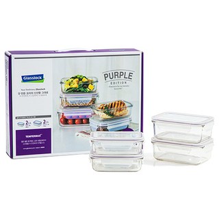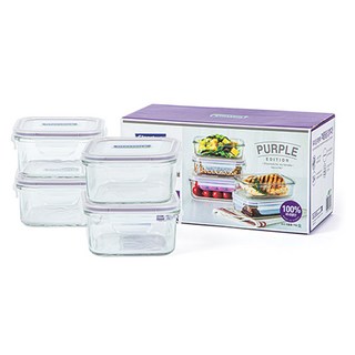 글라스락 퍼플에디션 정사각 밀폐용기, 4개, 490ml