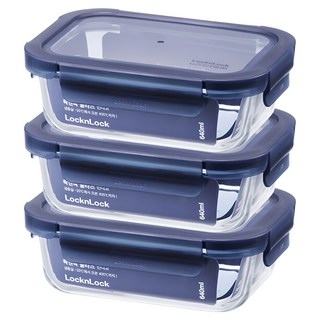 락앤락 글라스 인디고 직사각 밀폐용기, 3개, 640ml