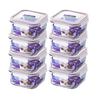 글라스락 퍼플 에디션 정사각 밀폐용기, 8개, 490ml