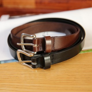 둥근 버클 슬림 폭 가죽 레더 벨트 (2컬러)
