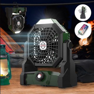 YAPOGI 초소음강풍 캠핑 무선 휴대용 대용량 배터리 선풍기 충전식 캠핑랜턴, 녹색