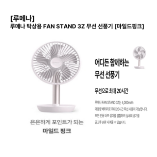 루메나 탁상용 FAN STAND 3Z 무선선풍기 서큘레이터 [마일드핑크], 마일드핑크