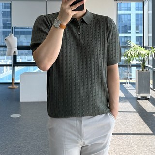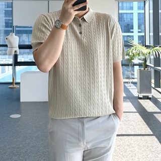 룩플레인 여름 케이블 비스코스 반팔 니트 카라 티셔츠 6color