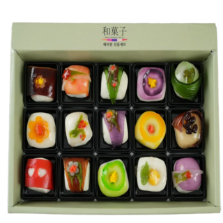 프리미엄 수제 화과자 15구 선물세트 전통 장인 달콤한 간식 디저트 명절감사답례 고급 선물(아이스박스포장), 15개, 45g
