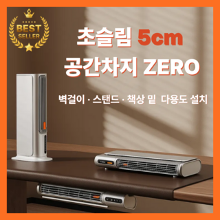 웜핏 초슬림 3in1 저소음 벽걸이 온풍기 PTC 스탠드 가정용 사무실 캠핑 전기히터, 실버