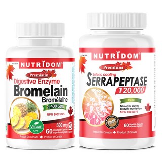 캐나다 뉴트리돔 세라펩타제 60캡슐 + 브로멜라인 60캡슐 코막힘 비염 영양제 세트, 60정