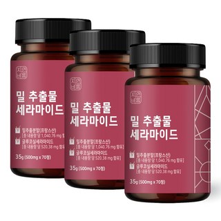 자연바름 밀추출물 글루코실 세라 마이드 티크 프랑스 밀 세라마이드 7.434mg, 70정, 3개
