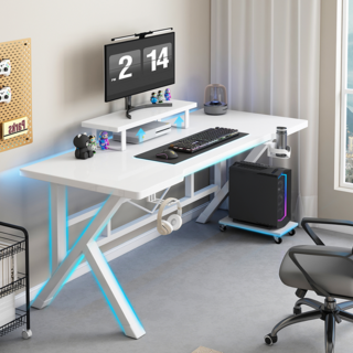 편안홈 K자 다용도 게이밍 컴퓨터 책상 다기능 멀티탭 선반 거치대 포함, 화이트
