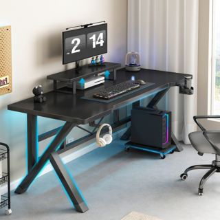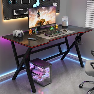 편안홈 K자 다용도 게이밍 컴퓨터 책상 다기능 멀티탭 선반 거치대 포함, 블랙