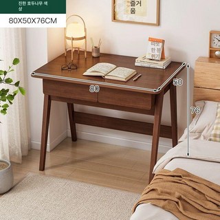 원목 미니책상 자취방 소형 갈색 학생 데스크 테이블 일자, 원목다리 80cm 표준 이중서랍 A