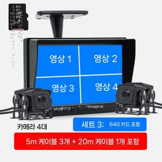 트럭블랙박스 모니터링 고화질 리버스이미지 제어 통합, 4way 10인치+음성 64G