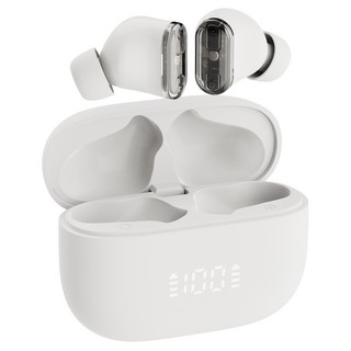 OMIIYA 터치스크린 디스플레이 무선 블루투스 이어폰 커널형 ANC 노이즈캔슬링 고음질, 화이트, T14