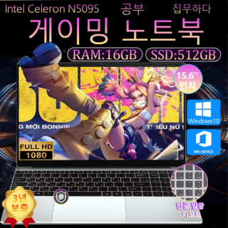 15.6치 노트북 게이밍 노트북 RAM:16GB/SSD:512GB 사무용 노트북 대학생 노트북 Windows10 & Ms Office 지문 잠금 해제 백라이트 키보드 5000mAh, N5095, WIN10, 16GB, 512GB, 은색