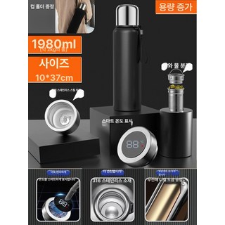 헬스 물병 자전거 주전자 스테인리스 보온병, 1개, 1ml, 316 온도 표시 젠틀 1980ml