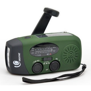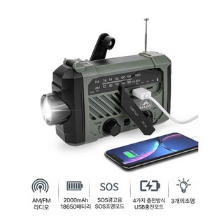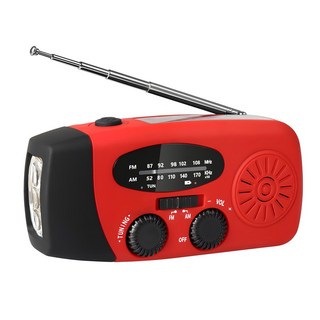 SUKI 태양열 휴대용 소형 핸드크랭크라디오 스피커 자가발전손전등 LED 랜턴 보조베터리, 레드