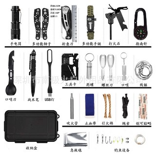 아이리즈 생존 키트 재난 가방 비상 구급 응급 안전 피난 용품 야생 생존 서바이벌 키트 40종, 블랙, 1개