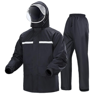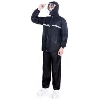 테밍 젖지않는 오토바이 우의 상하의 이중 안감 소재 우비 세트, 검정