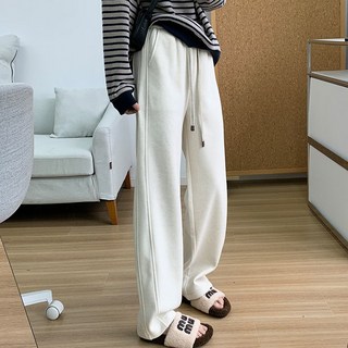 여성 캐시미어 와이드 바지 가을 겨울 캐주얼 울 바나나 맨투맨 기모 통 굽힘 A12Z4O ible1