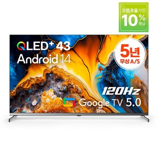 [10% 환급가전] 더함 CHIQ 4K UHD QLED DLG 120Hz 돌비 AI 스마트 구글5.0 TV, 109cm(43인치), UA431QLED Google5.0 120Hz 2025 WHITE, 스탠드형, 고객직접설치