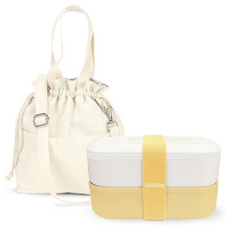 온다온 도시락통 밤부 2세대 전자레인지 직장인 도시락 가방 실속 세트, 1세트, 옐로+화이트
