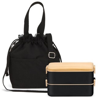 온다온 도시락통 스텐316 직장인 전자레인지 런치박스 + 보온보냉백 세트, 1세트, 블랙+블랙
