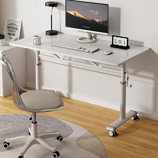 수동 모션데스크 높이조절 컴퓨터 책상 이동식 책상, 흰색