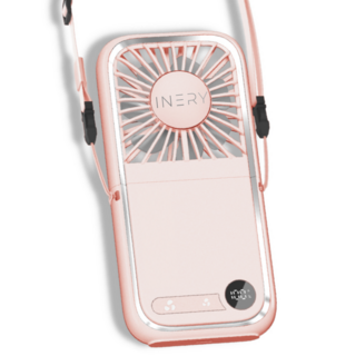 아이너리 접이식 휴대용 선풍기 대용량 보조배터리 케이블 일체형, 로즈 핑크