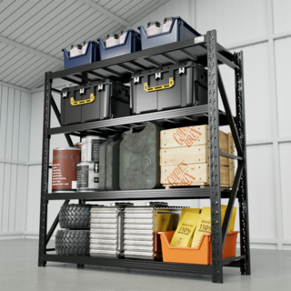 코끼리선반 고하중 300kg 중량랙 무볼트 철제 선반 조립식 랙, 블랙독립형, 4단