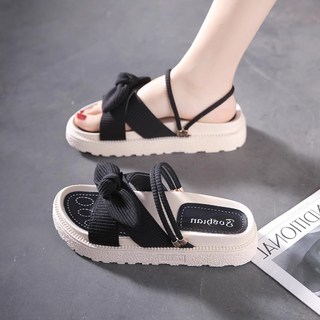 Merero 힐슈빌 키높이 발 편한 통굽 여름 리본 샌 비치샌들