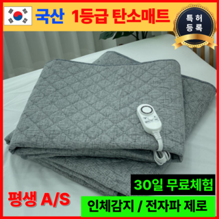 국산 특허 전자파없는 카본 탄소매트 인체감지 전기장판 전기요 온열, 슈퍼싱글(110 X 180cm)
