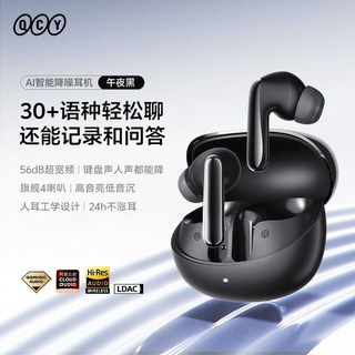 QCY T43 Buds 버즈 AI ENC 노이즈캔슬링 C타입 무선 블루투스 이어폰, 패브릭 블랙