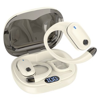 OGIVA 블루투스 이어폰 무선 오픈형 고음질 방수 C타입 귀걸이형 러닝 헤드폰, 베이지, H06