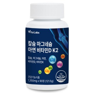 VitaLabs 칼슘 마그네슘 아연 비타민D K2 121.5g, 1개, 90정