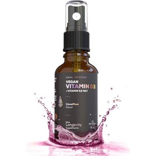 아이디얼 인퓨전 비건 비타민 D3 5000 IU K2 함유 (MK-7) 액상 스프레이: 유기농 자두와 계피 – 뼈 건강 면역 지원 뼈 구조 개선 (75회 제공량), 1개