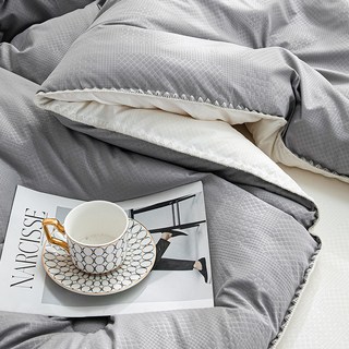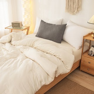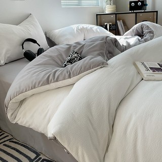 BIKASU 북유럽 사계절 침구세트 이중사 통기 베개커버+침대커버+이불커버 간략하다 시어서커 항균 워싱 세트