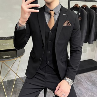 Enyofe 남성용 투버튼 캐주얼 쓰리피스 정장세트 재킷+조끼+바지 면접 기획 남자수트 3피스 결혼식 하객 남성 슈트 남자 겨울 검은 양복 세트 남성용 정장세트(5컬러)