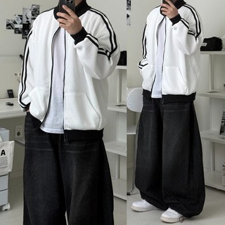 르위 트랙 라인 니트점퍼 오버핏 빅사이즈 바시티자켓 집업