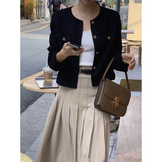 (자체제작) 루어스룸 젤리 가을 간절기 루즈핏 긴팔 골드버튼 포켓 라운드넥 숏 트위드 하객룩 자켓