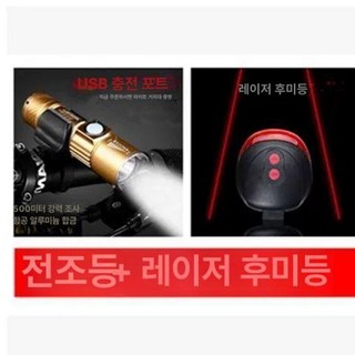 샤이닝 자전거라이트 LED 충전식 전조등 후미등 세트, 1개