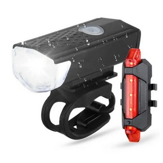 [DC-0218] LED 충전식 자전거 라이트 후미등 세트, 블랙, 1세트