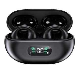 오픈형 무선 골전도 블루투스 V5.3 이어폰 스마트 커널형 노이즈캔슬링 이어폰 고음질 가성비, 블랙