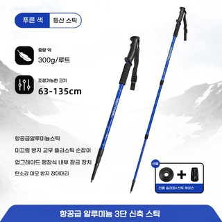 FONOW 등산스틱 3단 신축 충격 흡수 오색 미끄럼 2개 1세트 등산지팡이, 1개, 푸른 색