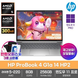 HP 프로북 4 G1a 14 HP1 노트북 윈도우11 라이젠5 14형 최신형 비즈니스 업무용 대학생, ProBook 4 G1a 14, WIN11 Pro, 8GB, 256GB, 실버