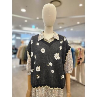 써스데이아일랜드 플라워 자카드 브이넥 베스트 T242MVT133W